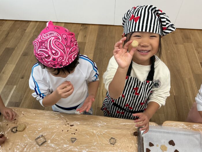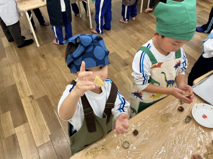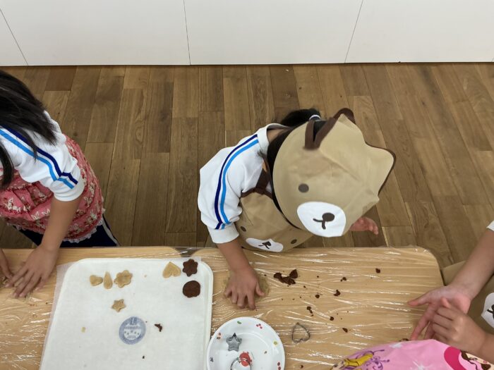 幼児クラスでは、クッキーの型抜きをしてもらいました。